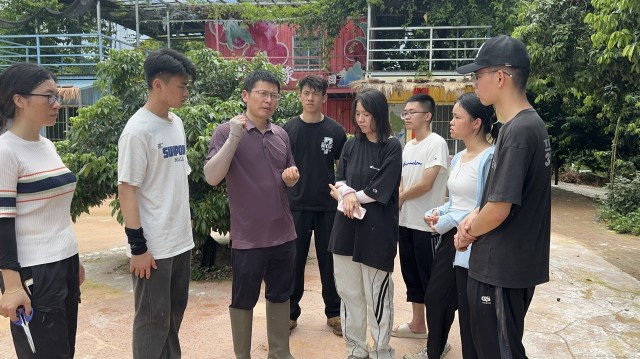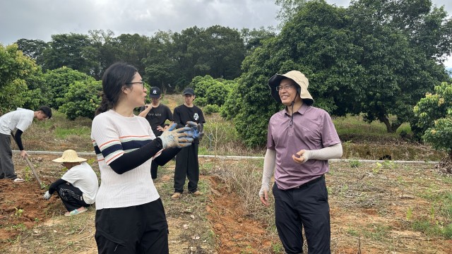 为推进农业现代化和乡村振兴,通过科技创新、人才培养和基层实践相结合的方式,推动农业生产向高效、绿色、可持续方向发展。大学生社会实践活动应与产学研相结合,鼓励高校、科研机构、技术专家及地方农业企业合作,共同开展科研攻关和技术推广。7月16日,“助农为乐”实践团“百千万工程”突击队与广州市科学技术局专家郭义教授博士团队在正旭现代农业孵化园荔枝种植基地积极参与农业生产一线实践研究,通过理论与实践相结合,推动农业科技进步,助力乡村振兴。