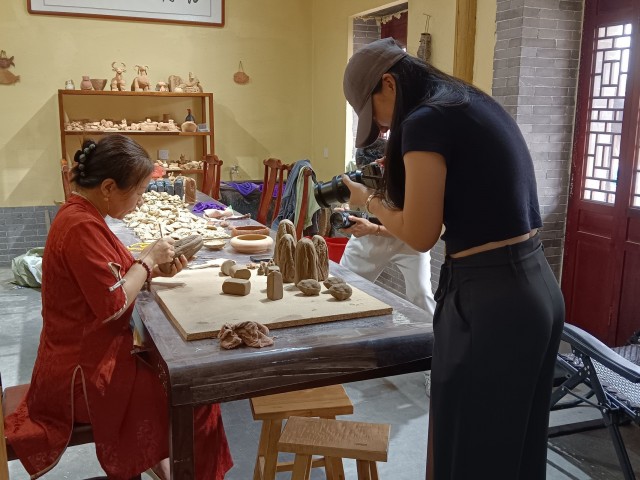 实践团队的第一站是位于山东省的东营市。在这里,“泥路生花”实践队成员有幸遇到了王师傅,一位拥有四十多年澄泥印制作经验的老师傅。王师傅手中的泥块在他的巧手下,逐渐变成了一枚枚精美的印章。他介绍说,澄泥印的制作过程极其繁琐,从选泥、澄泥、制坯、雕刻到烧制,每一步都考验着匠人的技艺与耐心。通过与传承人的深入交流,我了解到澄泥印不仅是一种实用的工艺品,更是一种文化的载体。它记录着历史的变迁,承载着人们的情感和记忆。然而,随着现代化进程的加快,这项传统手艺正面临着失传的危机。年轻一代对手工艺的兴趣逐渐减少,传统技艺的传承人也越来越少。随着现代科技的发展,传统手工艺品的市场逐渐萎缩。王师傅无奈地表示,现在的年轻人更倾向于选择轻松快捷的生活方式,愿意学习这门手艺的人越来越少。团队成员在调查中发现,许多传统手艺人都面临着同样的困境:技艺精湛却难以吸引新一代的传承者。