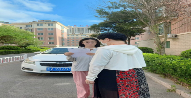 图为实践队队员采访学生家长 大学生网报通讯员 王洋 供图