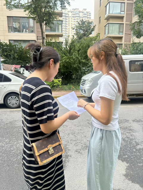 图为实践队队员访问家长 大学生网报通讯员 曹晓雨 摄