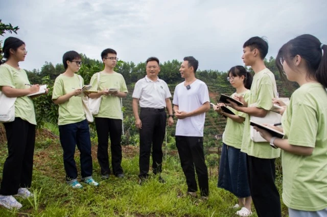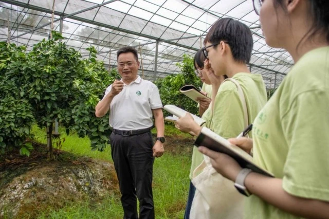 图为程运江教授正在向成员们讲解柑橘种植知识 李奇玥摄