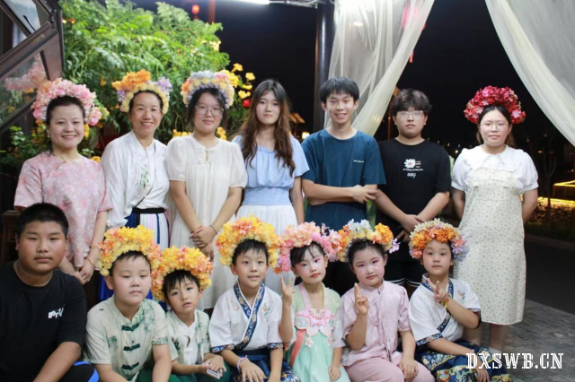 在追求文化多样性与传承的今天,非物质文化遗产的保护和传播变得尤为重要。为了向年轻一代普及和传承珍贵的非遗文化,2024年8月9日“教育守望,智汇归巢”实践队组织开展具有传统特色的穿汉服戴簪花的艺术体验活动,邀请了社区小朋友们穿着汉服亲自动手学习制作簪花,感受传统文化的魅力。