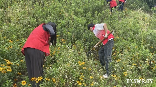 在一枝黄花清理活动中,实践团的志愿者们发扬不怕苦、不怕累的精神,在专业团队的带领下积极清理山头上的外来入侵植物。