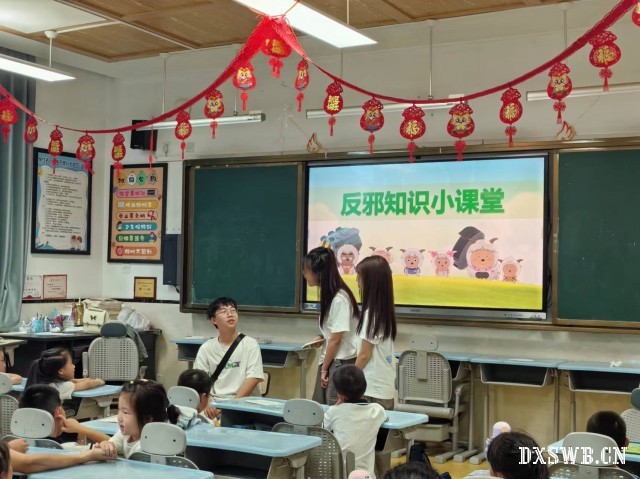 活动在实践队成员的精心筹备下拉开帷幕,首先进行的是“反邪小课堂”环节。实践队员以生动的案例、浅显易懂的语言,向孩子们讲解了邪教的危害、识别方法以及遇到邪教活动时应采取的正确应对措施,帮助孩子们在轻松愉悦的氛围中树立正确的价值观和防范意识。