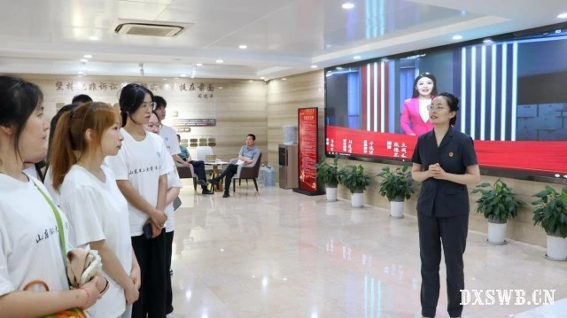 二、初见:庄严之门,法治之窗踏入周村区人民法院,首先映入眼帘的是那座庄严的国徽,它高悬于穹顶之下,仿佛诉说着法律的威严与公正。在法院工作人员的引领下,实践团成员们穿梭于各个法庭与办公室之间,深入了解法院的立案、审判、执行等核心职能,每一步都见证了法院在维护社会公平正义、促进法治社会建设中的不懈努力与显著成效。