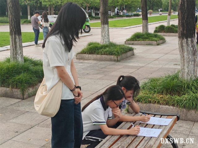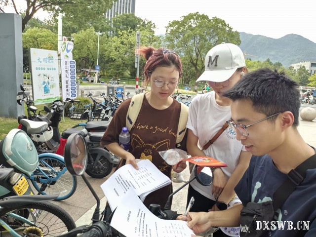 2024年7月13日下午,科普反邪实践队队员分组在学子广场周边开展问卷调查和宣传册发放,旨在增强公众反邪意识与能力,展现青年学子的社会责任感。