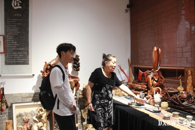后来,拾遗谱新实践队成员张天昊采访了菩铭屋创始人,对根雕,根艺颇有造诣的李西平女士,她从北方山西到了美丽的海南岛,灵魂中透露出对大自然奇观壮景的挚爱,由此根雕艺术融入了血液里。六年的寻根望木中,有了对根雕文玩艺术更深的探索,似菩提传佛音,老根赋新韵,砗磲胜白玉,青瓷入海深。后来她从海南又转辗来到了云南的丽江束河古镇,根的寻觅又融入了多元化的纳西文化与藏传文化。从而她肩负着使命,带着南北及非物质文化等多元素的文化传承,历经六载,最后走进了山西太原古县城。在菩铭屋里的每件作品里,大多都存在着非遗传承元素及它们的一些传奇故事,从而形成了传承人独有的立体特征,他们将带着这份使命,用智慧演绎出它们独有的生命力来,去相遇与他们有着灵魂共振的人们。同时,实践队队员也了解到,祁县玻璃器皿久负盛名,但在全国范围来说,宣传量较少,非遗传承人们希望有更多的人来了解祁县玻璃制品,透过它们精美的外表来深入了解其背后深远的文化,并走进多彩的生活。