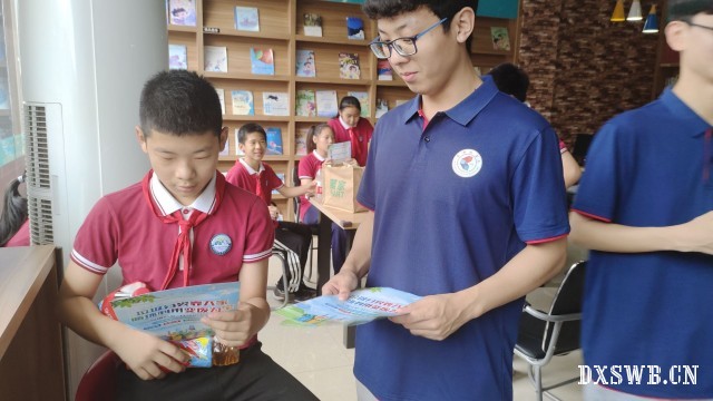 图为小组成员李阳在社区活动室中为小学生宣传垃圾分类有关知识。孔杰供图