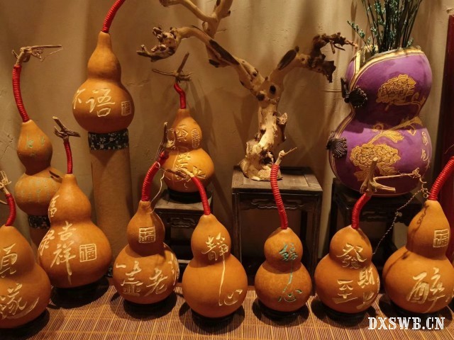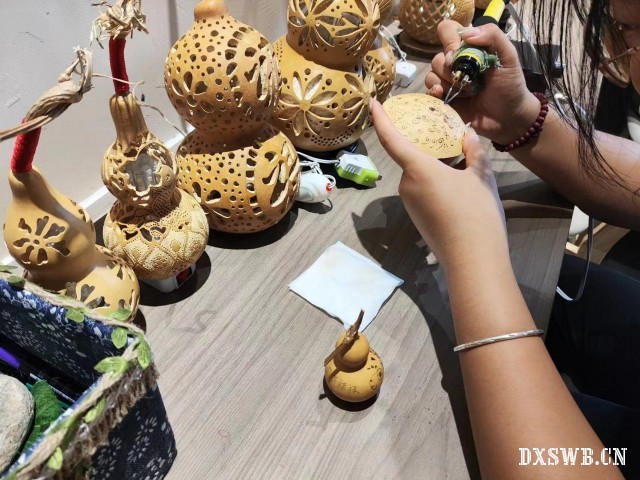 首先在堂邑镇书记的带领下实践团队参观了当地葫芦雕刻作品。雕刻图案丰富多样,有花鸟、山水、人物等,每件作品都栩栩如生,仿佛把整个世界都浓缩在小小的葫芦上。而且葫芦雕刻还融合了传统民俗文化,寓意吉祥如意,深受人们喜爱。除了葫芦雕刻图案,葫芦的形状也是多种多样,有扁圆形、棒形、椭圆形等,每一个形状都有其独特的用意和用途。