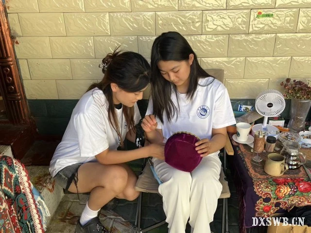 在霍尔果斯市的红桥社区,实践团开启了一场充满惊喜与感动的民族文化风俗探索之旅。居民们如同热情好客的主人,拉着同学们的手,骄傲地带领他们参观社区,详细且自豪地介绍着每一处独特的文化特色。他们来到伊犁州伊宁市的六星街民俗旅游区,漫步在风情万种的街道上,仿佛置身于多民族文化交织融合的绚丽画卷之中。走进民俗文化陈列馆,一幅幅珍贵的图片如同历史的长卷缓缓展开,一件件古老的物件仿佛在低声诉说着岁月的传奇。在手工艺人的耐心指导下,实践团成员们全神贯注地亲手制作手工艺品。一位维吾尔族手工艺人微笑着走到一位同学身边,轻轻握住他的手,调整着拿材料的姿势,用不太标准但充满关爱的普通话说道:“孩子,这样拿会更稳当。”同学们时而互相看看对方的制作进度,还不时地交流着各自的制作心得,现场氛围热烈而又融洽,充满了欢声笑语,让同学们真切而深刻地体会到民族团结所带来的丰硕且喜人的成果。