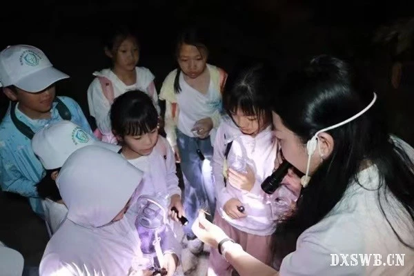 宁静的夜晚,月光如细沙般洒落,山海突击队的队员们经过前期充分的准备,在活动开始后带领小朋友们一同观察生物,向小朋友们讲解相关的内容,科普生物和环境的知识,宣传环境保护的意识。
