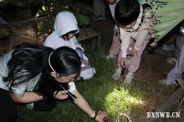 今晚活动的重头戏当属对蜘蛛的观察与学习。在导师的引导下,大家小心翼翼地穿梭于林间小道,寻找那些隐藏在暗处的蜘蛛网。随着手电筒光束的扫过,一张张晶莹剔透、形态各异的蛛网在夜色中显现,宛如大自然的杰作。导师不仅介绍了蜘蛛的种类、生活习性,还详细讲解了蛛网的构造原理及其捕猎机制,让在场的每一个人都惊叹于自然界的智慧与神奇。这种直观的观察方式,让营员们对蜘蛛这一常常被误解的生物有了全新的认识,也深刻体会到生物多样性的重要性以及人类活动对自然环境的影响。