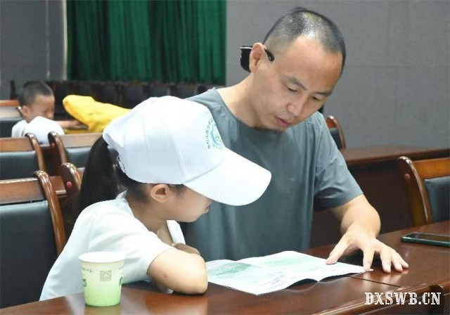 营员与家长一起阅读安全手册(吴培嘉 摄)