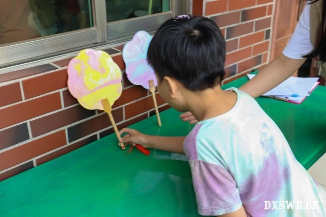 图为小孩子们在非遗漆扇工艺课上制作非遗漆扇 朱境欣供图