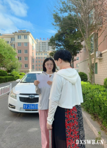 图为实践队成员于社区内采访青少年家长。大学生网报通讯员 王洋 供图