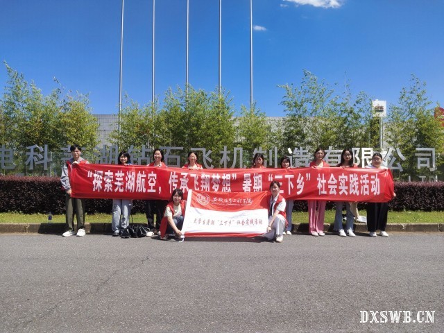 为了响应大学生暑期“三下乡”社会实践活动号召,7月4日下午,通识教育与外国语学院“飞梦探寻者"基层服务实践团队在马克思主义学院王燕老师的指导下,踏上了一次激动人心的旅程,前往中电科芜湖钻石飞机制造厂开展“探索芜湖航空,传承飞翔梦想”为主题的暑期实践活动,去感受中国航天发展的飞速历程,了解英语专业与航空产业之间的关联,在今后的学习生活中用英语讲好中国航空故事。