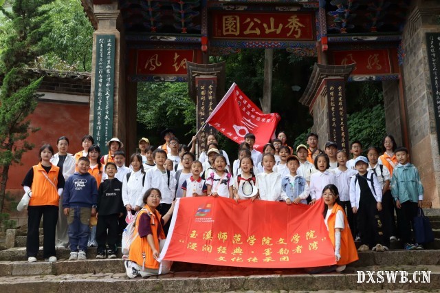 经过5天的诵读训练,孩子们的普通话得到了极大提升。7月19日,推普团12位志愿者带领40名学生来到秀山进行研学活动。活动伊始,通海楹联协会会长林启龙老师为孩子们讲述了通海楹联历史和书法文化。林老师表示,者湾是碧山墨庄、书香之地,者湾的每一个孩子都有传承书法文化、楹联文化的责任和义务。对于孩子们的到来他感到十分欣慰,他期待看到更多的孩子成为家乡的小小宣传者和推普员。