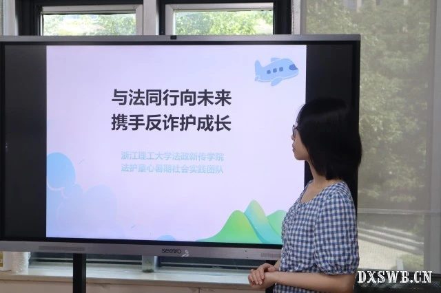 在杭州市滨江区的笑笑橙青少年消防应急安全体验馆中,一节由来自浙江理工大学的“法护童心”暑期社会实践团队带来的普法小课堂正在热情洋溢地进行当中。孩子们坐在桌前聚精会神地听着老师的授课,在老师提出问题时积极举手回应、开动脑筋,活跃又愉快的课堂在炎炎夏日里绽放着勃勃生机。