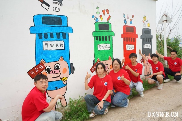 最后,实践团成员们以生态环保,垃圾分类为主题,在三乐村进行垃圾分类墙绘,通过精心构思,巧妙设计,用手中的画笔和满满的创意向村民们宣传垃圾分类理念,每一笔每一划都倾注着他们对乡村的热爱和对美的追求,一面面原本色调单一的墙壁逐渐成为了环保知识宣传展板,也为乡村文化建设新增一道亮丽风景线。