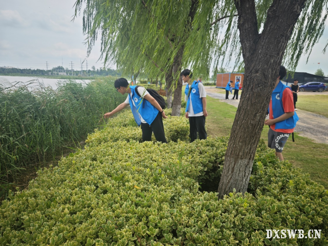 图3 队员们在凤鸣湖进行实地考察