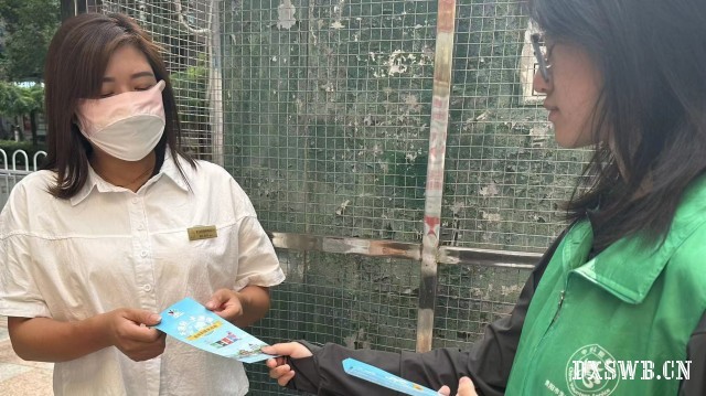 图为“青春翼站”实践团队成员于社区内向居民宣传生活垃圾分类