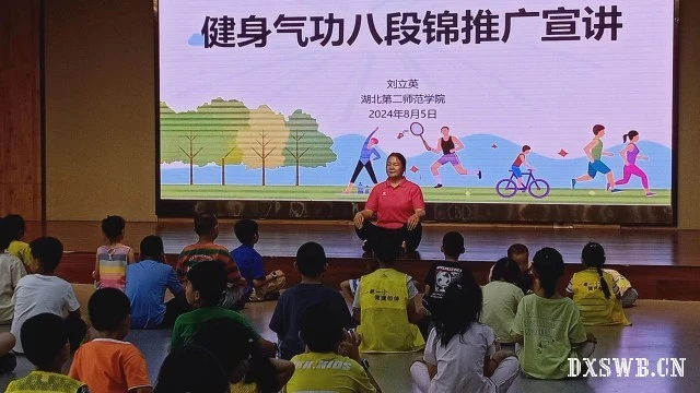 8月5日,风和日丽,天朗气清,湖北第二师范学院体育学院的刘立英老师及其志愿者团队携手江欣苑社区,共同举办了一场别开生面的“健身气功八段锦推广宣讲”活动。此次活动旨在通过八段锦这一蕴含深厚文化底蕴的传统健身方式,激发孩子们对传统文化的兴趣与热爱,同时促进社区居民的身心健康,共同传承与弘扬这一千年的健身瑰宝。