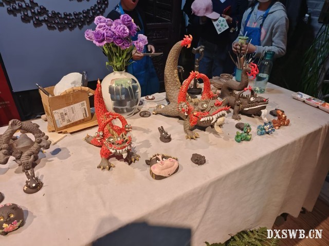在探索中发现多家非遗店铺于古街中营业,例如:牛角梳制作技艺,烧琉璃技艺以及太平泥叫叫等多家非遗店铺。在探索中,实践队员寻访到“太平泥叫叫”非遗传承人周宝康。实践队员在与老师的交流中了解到周宝康老师是第五代泥塑传人,为了传承这项技艺他选择响应政府的号召在西津渡古街建立非遗体验店。进入店面可以看到许多老师的泥塑作品,为了吸引年轻一辈的关注,老师还制作了作品印章,为旅人留下属于“太平泥叫叫”的特殊记忆。实践队员有幸体验了太平泥叫叫的制作,感受到小巧精致的泥塑所蕴含的非遗匠人的点点滴滴的心血注入。