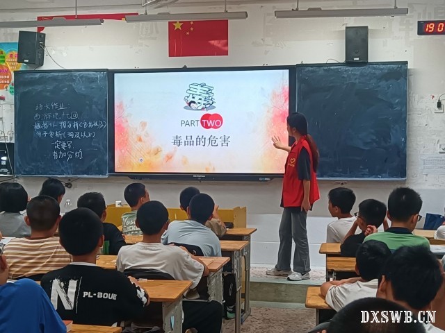实践队队员匠心独运,打造了一场禁毒教育的奇妙旅程。实践队队员深入浅出地介绍了毒品的本质,揭开了毒品伪装的面纱。随后,队员详细阐述了毒品的危害,每一个案例都震撼人心,引人深思。当话题转至青少年缘何染毒时,实践队队员通过真实的案例和深入的分析,揭示了背后的复杂原因。同学们听后纷纷点头,表示对这些因素有了更深刻的认识。最后,实践队队员重点介绍了青少年如何防范毒品,提供了实用的建议和方法。整个课堂氛围热烈而积极,同学们不仅增长了知识,更坚定了远离毒品的决心。这次禁毒课堂不仅是一次知识的传授,更是一次心灵的触动,让“无毒青春,从我做起”的理念深植于每位同学的心中。