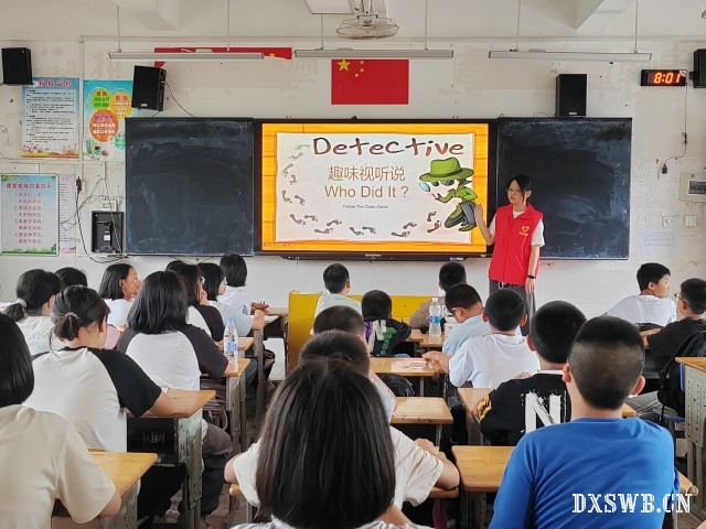 随着清晨的第一缕阳光悄悄溜进教室,英语视听说课堂在轻松愉快的氛围中缓缓拉开序幕。实践队队员通过设计一系列引人入胜的侦探小游戏,将同学们引领进一个充满悬疑与挑战的英语探险世界。同学们将扮演侦探角色,运用英语作为沟通工具,解析线索、搜集证据、推理判断,最终揭开案件真相并在这一过程中自然而然地吸收和掌握新的英语词汇。同时,实践队队员还融入了趣味盎然的“猜物游戏”,为课堂增添了更多欢笑与活力。这些游戏不仅极大地激发了同学们对英语学习的兴趣,还在不知不觉中锻炼了他们的英语听力、口语表达能力以及词汇运用能力,让英语学习变得更加生动有趣,成效显著。