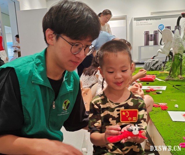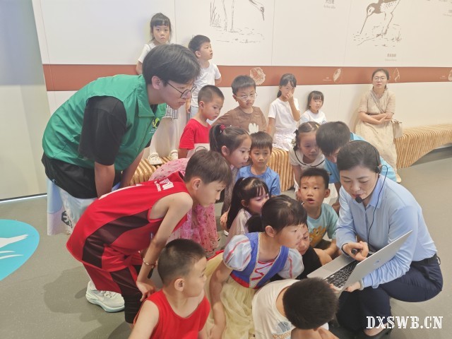 图为湿地博物馆工作人员为儿童讲解湿地生态知识
