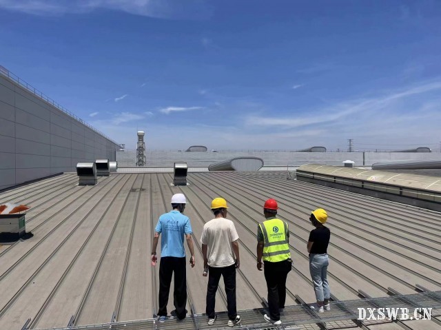 在任总与安全员的陪同下,成员们参观了公司在某生产基地屋顶的太阳能光伏电板安装施工现场。