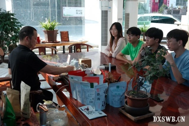 实践团队来到马坡玉峰茶业有限公司,与负责人王海玉进行深入交流。会议室内,负责人详细介绍玉峰茶的种类和生产过程:“我们的茶叶主要有绿茶、红茶和藤茶,从采摘到加工,每一步都严格把控品质。初春采摘的茶叶,经晾晒、炒青、揉捻、整形等工序,辅以相应机械设备,大大提高了效率。”团队成员认真聆听,不时记录关键信息。团队成员还参观了制茶车间,目睹了初春采摘、晾晒、炒青、揉捻、整形等步骤中机械设备的应用,切实体会到机械化对提高效率的重要作用。此外,团队通过与负责人的沟通,深入了解了玉峰茶产业链的发展情况、市场需求以及对当地劳动力就业和农民的帮助。为确保信息的准确和完整,团队进行了开会总结和拍照记录。同时,团队成员还领略了当地丰富多彩的茶文化,对每一片茶叶背后的努力和匠心有了更深刻的认识。