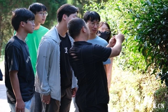 纸上得来终觉浅,绝知此事要躬行。该实践团队前往马坡村本地茶园,探索茶叶生长环境、制作工艺及文化传承。在茶园,经验丰富的茶农热情展示采摘技巧:“采摘茶叶要注意手法,轻轻捏住嫩芽,迅速摘下,以保证茶叶品质。”成员们纷纷尝试,体验采摘乐趣。与茶园负责人交流中,成员们了解到茶园坚持使用有机肥料和自然农法的重要性。