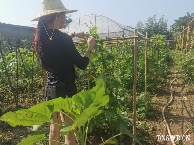 图为实践团队成员对果蔬藤蔓加固 孙浩琪/供图