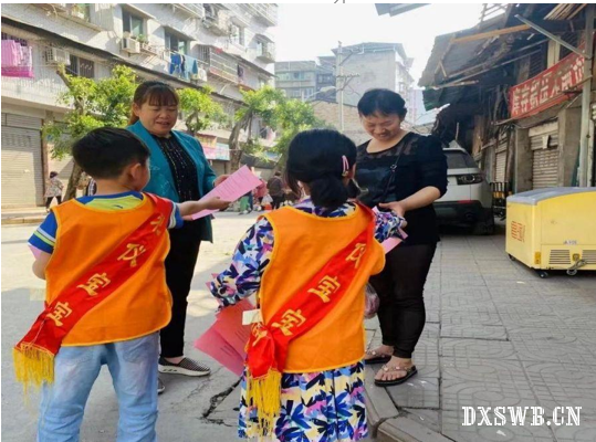 图4 孩子们上街发放文旅知识宣传册 陈杰 摄