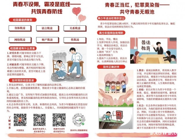 活动现场,志愿者们运用精心制作的宣传手册,向社区居民和青少年详细介绍了校园霸凌的表现形式、危害后果以及相关法律法规。同时,志愿者们通过深入浅出的讲解,深刻剖析了校园霸凌与犯罪之间的潜在关联,强调了提高法律意识对预防犯罪的作用,引导大家深入思考校园霸凌产生的原因和预防措施,提醒青少年要增强自我保护意识,勇敢对校园霸凌说“不”。