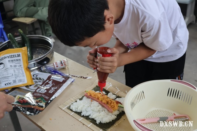 图为孩子们制作寿司