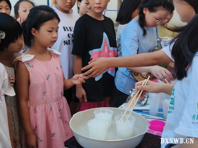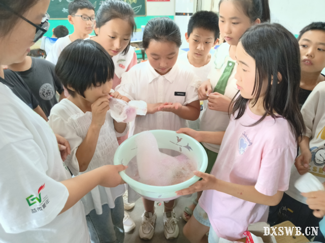 图为孩子们做科学小实验——彩虹泡泡龙