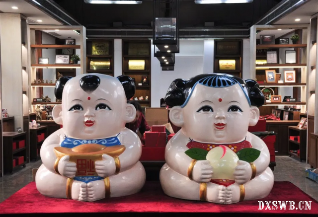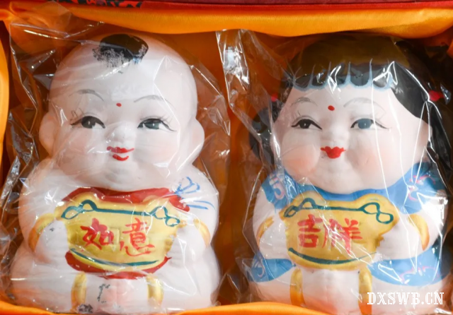 图为惠山泥人标志性人物形象——阿福和阿喜