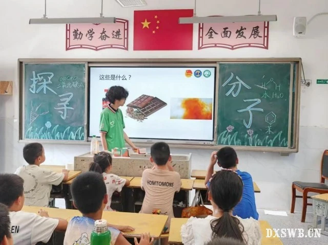鄂州市,2024年7月25日讯 —— 7月24日,武汉理工大学的大学生社会实践队带着满满的热情与专业知识,走进了鄂州市沙窝小学的教室,为这里的小朋友们带来了一场别开生面的“分子的追寻”科普课。这场科普活动不仅丰富了孩子们的暑期生活,更在他们心中种下了科学探索的种子。