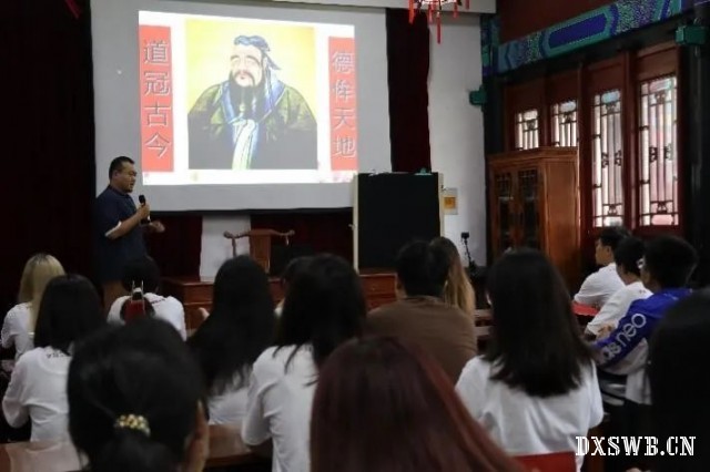 随后实践团成员走入了颜庙中的另一个课堂里,参与了一场《大哉孔子》的讲座,学习孔子的人生经历、思想精髓及其对后世的深远影响,感悟圣人“温良恭谦让”的品质。