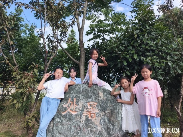 图为学生们与小凌老师在学校特色石观十二节气之一处的合影。董铠歌 供图