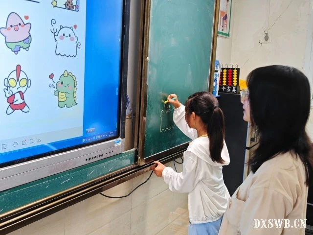 图为小张老师指导小朋友们在黑板作画。官运 供图
