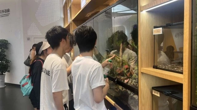 在讲解员的带领下,大学生们开始了他们的探索之旅。他们首先来到了昆虫生态展区,这里通过模拟自然环境的方式,展示了昆虫在生态系统中的重要作用。同学们仔细观察着每一个细节,从昆虫的觅食行为到繁殖方式,从它们与植物的共生关系到对环境的适应能力,每一个发现都让他们感到惊叹不已。