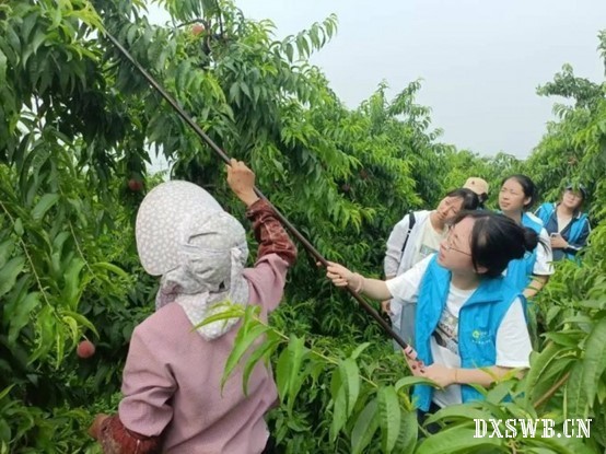 下午2点,团队成员们在社区工作人员的带领下深入当地桃园。在桃园里,他们亲身体验了摘桃子和挑捡桃子的过程,不仅了解了桃子的生长周期和采摘技巧,还与果农们交流了种植经验和市场销售情况。通过实地调研,队员们对当地的农业生产有了更加直观的认识,也深刻体会到了农民们的辛勤付出。