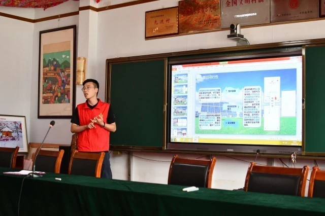 在讲座中,大学生们着重展示了团队在新能源领域的科研成果和技术创新。他们通过图片模型和视频演示,向居民们展示了高效的太阳能电池板、智能的风力发电设备以及先进的生物能转化技术。并晒出了自己精心设计的专利项目,这些成果不仅具有较高的科技含量,更具备在乡村实际应用的潜力。居民们不时发出赞叹之声,对这些创新成果表现出了浓厚的兴趣。一位大爷好奇地询问:“这些新能源设备真能在我们村里用起来吗?”队员们耐心地解释道:“大爷,这些技术都是为了让大家的生活更美好、更环保。只要条件合适,完全可以在咱们村推广应用,不仅能节省能源费用,还能为保护环境出一份力呢!”大爷听后,脸上露出了欣慰的笑容。