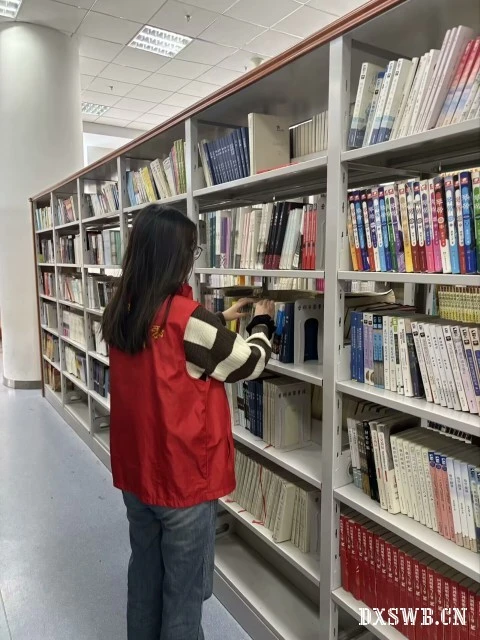 活动伊始,在图书馆工作人员的引导下,实践队队员们迅速熟悉工作流程,明确各自职责,随即有序地投入到志愿服务中。他们穿梭于书架间,仔细整理图书,将错位的书籍归位,依据分类标识摆放整齐,让书架焕然一新,方便读者查找。