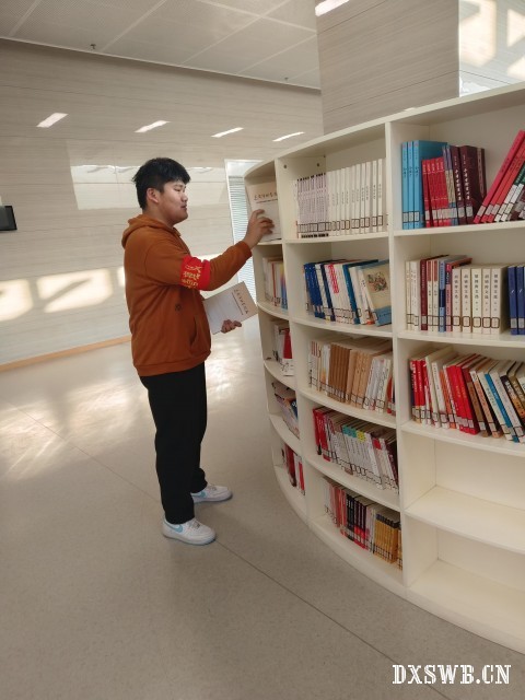 图为实践队员在帮忙整理图书。大学生网报通讯员 陈闯 供图