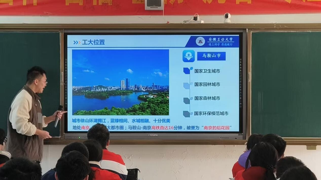 安徽工大学子返家乡开展“感恩母校行,电亮青春梦”社会实践活动 2025年1月12日午安徽工业大学(安工大)学生戈正翔等人前往毛坦厂东城校区(毛东)高三25班进行“返校宣讲“活动,回到他们的母校宣传安工大,欲使更多中学生认识安工大。