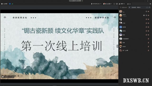 近日,以“锔古瓷新颜 续文化华章”为名的实践队伍,为了更好地传承与发扬古陶瓷修复技艺,组织了一场别开生面的线上培训活动。此次培训由队长赵国盛主持,全体队员通过视频会议平台积极参与,共同学习古陶瓷修复的相关知识。会议期间,队长赵国盛对各位队友的任务分工做了一系列安排并详细指导各位同学如何撰写发布新闻稿,确保后续实践工作能够顺利开展。
